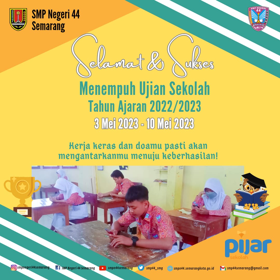 Ujian Sekolah SMP Negeri 44 Semarang Tahun Ajaran 2022/2023 dilaksanakan tanggal 3 Mei s.d 10 Mei 2023 menggunakan Pijar.