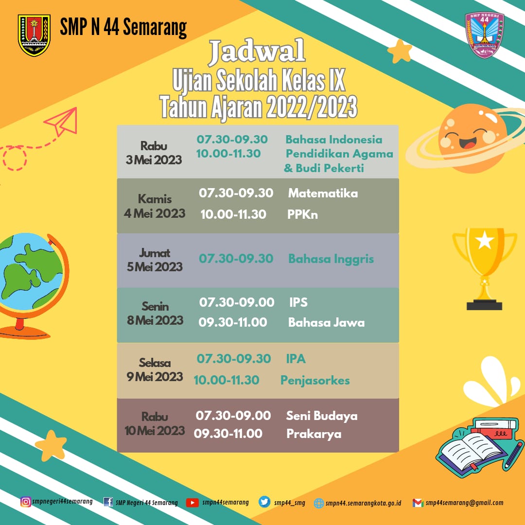 Selamat dan Sukses menempuh Ujian Sekolah Tahun Ajaran 2022/2023 SMP Negeri 44 Semarang